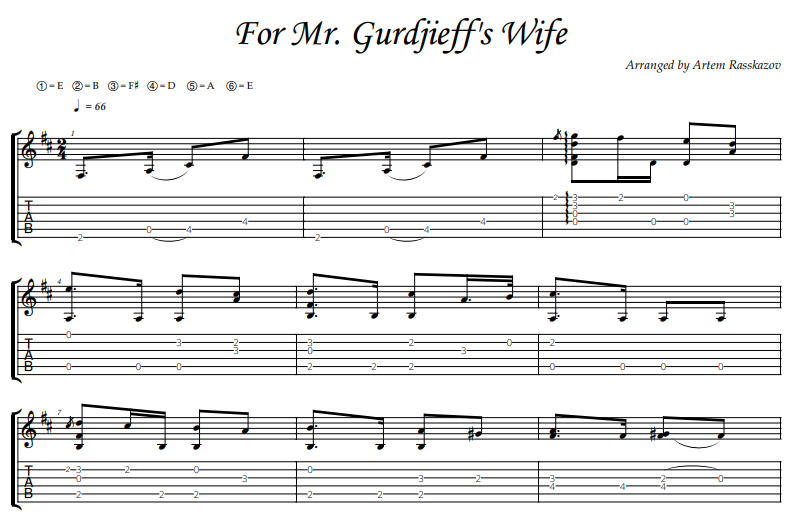 For Mr. Gurdjieff's Wife$3$3https://schema.org/InStockusdClassical Guitar CollectionClassical Guitar CollectionTabs and notes in PDF, Guitar Pro 6, 7Add to cartAdd to wishlist New wishlistShare on XShare on Facebook Copy linkCopy product URL